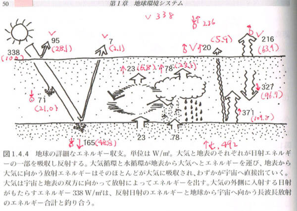 ・太陽の日射エネルギーの約半分が地表に吸収されるが、そのうち半分ほど(47%)は水の蒸発によって運び去られる。残りは対流によってが14%、放射が39%で、この収支が成り立つことで地表の平均温度が保たれる。水の循環による役割は大きい。と考えると気化熱を利用するのは自然の仕組みにかなっていそうな気がする。
