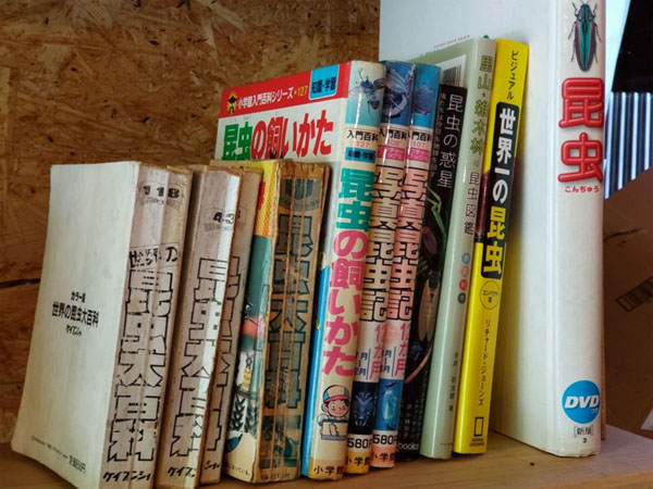 左の5冊は自分が子供の頃から持っているもので写真昆虫記がお気に入り。一番右は息子用に買ったもの。