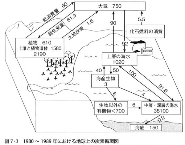 ▲光合成を行う植物と、呼吸を行う動物の間の循環がイメージできる図。