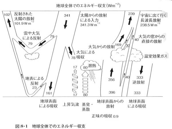▲太陽から始まる地球のエネルギー収支はおなじみ。
