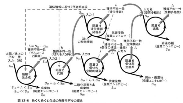 進化とは、一見多様性が増し、エントロピーが拡大するように思えるが、全体を見ると、生命が不均一な状態を生み出そうとする営みの一つとすることができる。