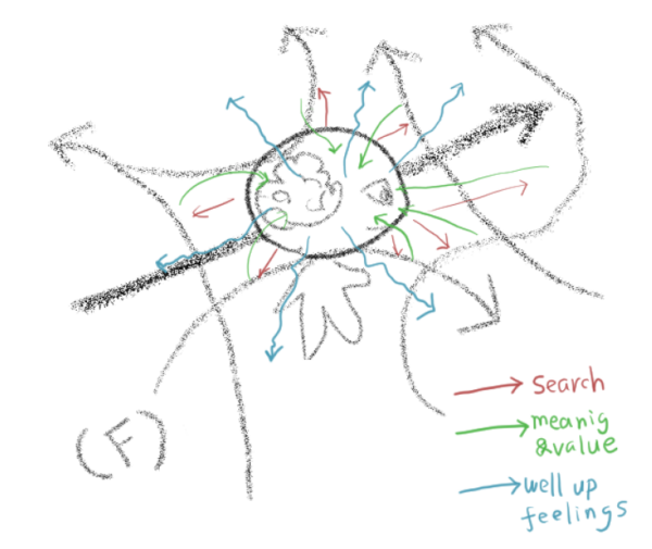 ただし、ここに能動性がないのではなく、様々なライン(世界の奥行き)に対するDのような生態学的な働きかけ(探索行為)が、まずはある。そして、それによって得られた意味や価値が、その人の中に様々な感覚を湧き上がらせていると思うのです。