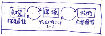 このように対応させることにより、生態学的な(知覚-技術-環境)の構造による循環に載せることが出来そうだ。