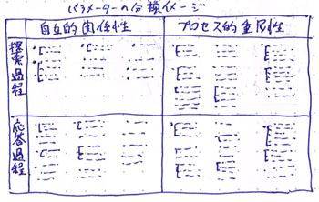 といったように整理する枠組みとして利用できないだろうか。これによって応答過程においてもパラメーターを成果に結びつけやすくなりそうな気がする。