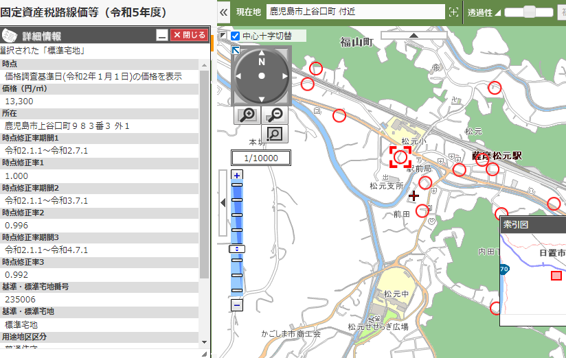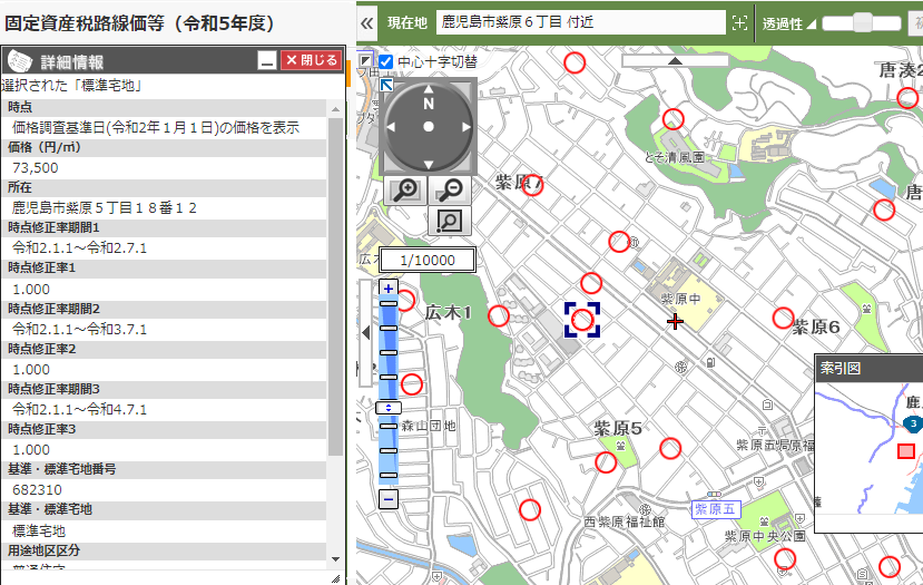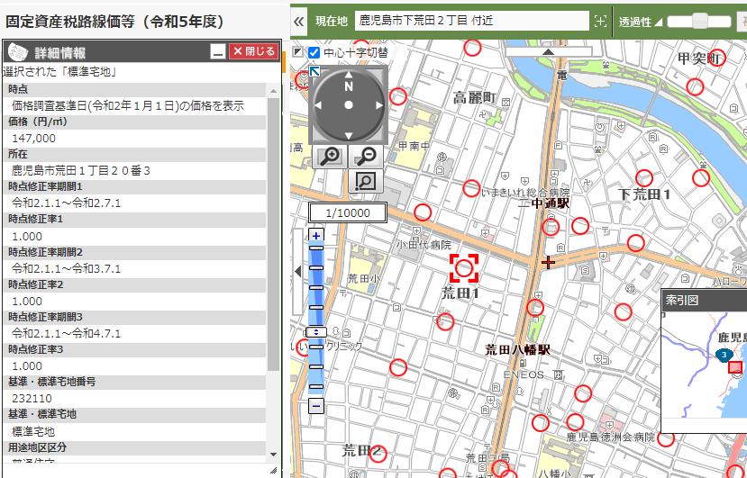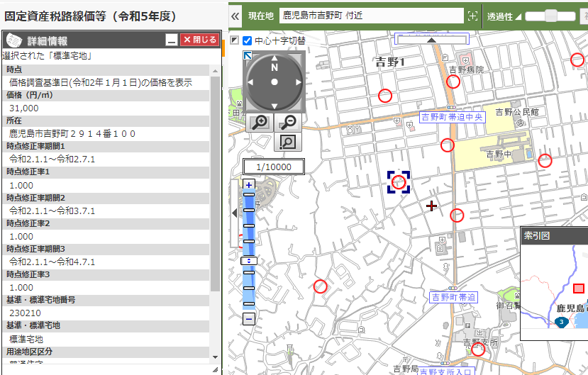例えば、全国地価マップでいくつかの標準宅地の参考価格(公示価格)を比較してみましょう。(実際の取引価格はこれらの価格の1.1~1.2倍程度になることが多いです。ネットで近い条件の売地を検索して、相場感を掴んでみると良いでしょう。)