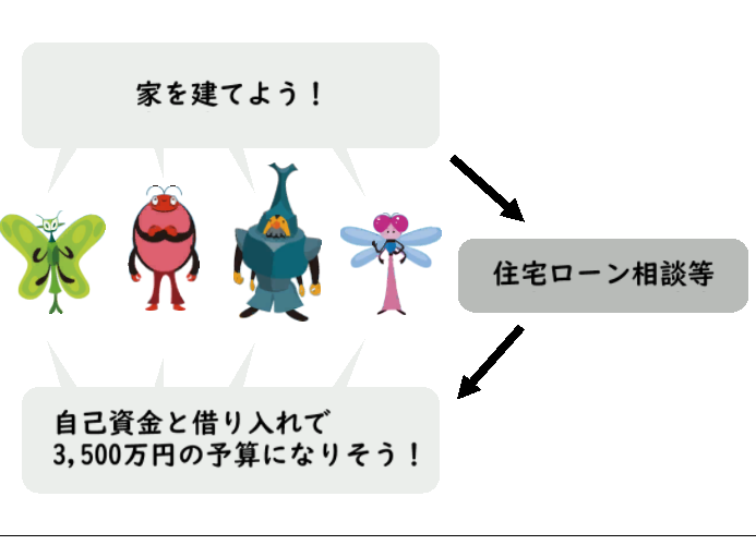 例えば、住宅ローンの相談の結果、自己資金と借り入れで3500万円を住宅にかけられそうだ、としましょう。
