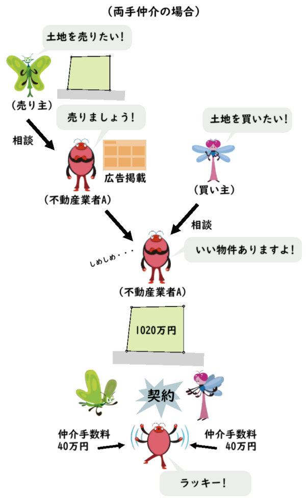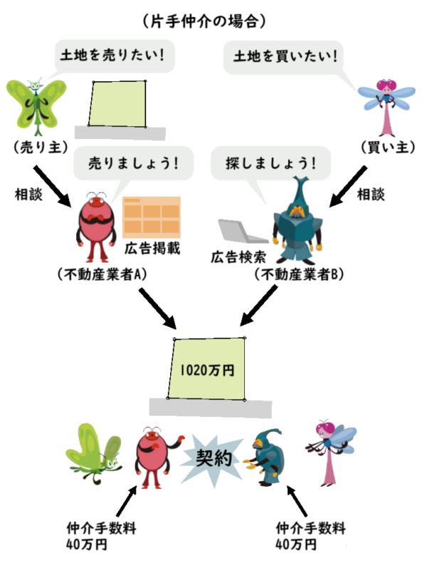 この場合、それぞれの仲介業者はそれぞれ、40万円の手数料を手にすることになります。