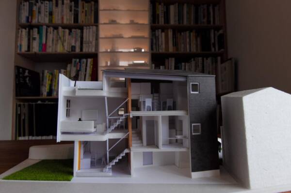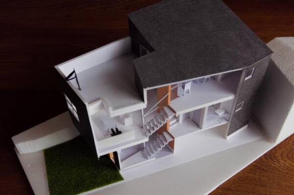 また、スキップフロアーなどの複雑な断面形状を採用することも多いので、全体の構成を掴むには、俯瞰して眺めることができる模型が一番です。