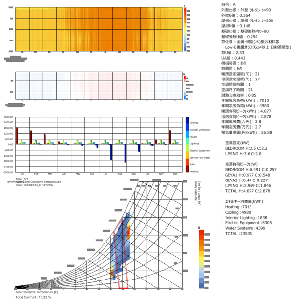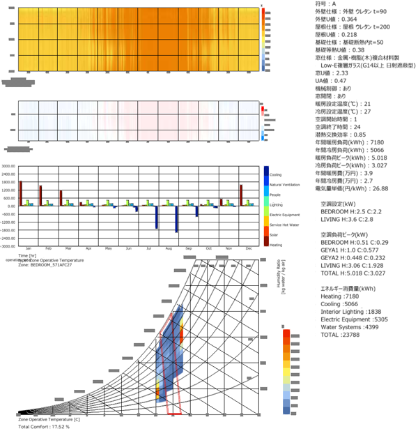 モデル化が必要なため、現実にそのまま合致するとは限りませんが、設計内容によって、どの程度のエネルギーを必要とし、快適性がどう実現できるか、各季節に太陽の日射熱をどこがどの程度受けるか、自然光だけでどの程度の明るさが確保できるか、などを比較検証することができるため、仕様決定の根拠を持つことができるようになります。