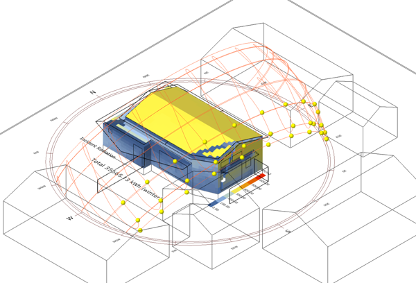 これにより、その地域の気象データをもとに、エネルギー解析、日射解析、光環境解析がVectorwors上で直接行えるようになりました。(風環境解析のみ未対応で、他のCAD経由で検証しています。)