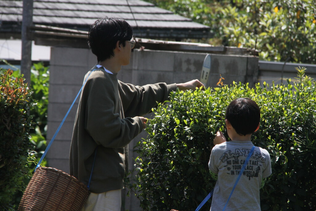 長男と三男も参加。(新芽を摘むのは時期的に1,2週間ほど早かったそうですが、楽しむことが目的なので程よく収穫)
