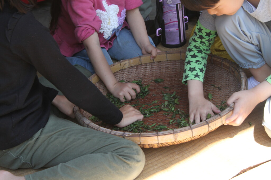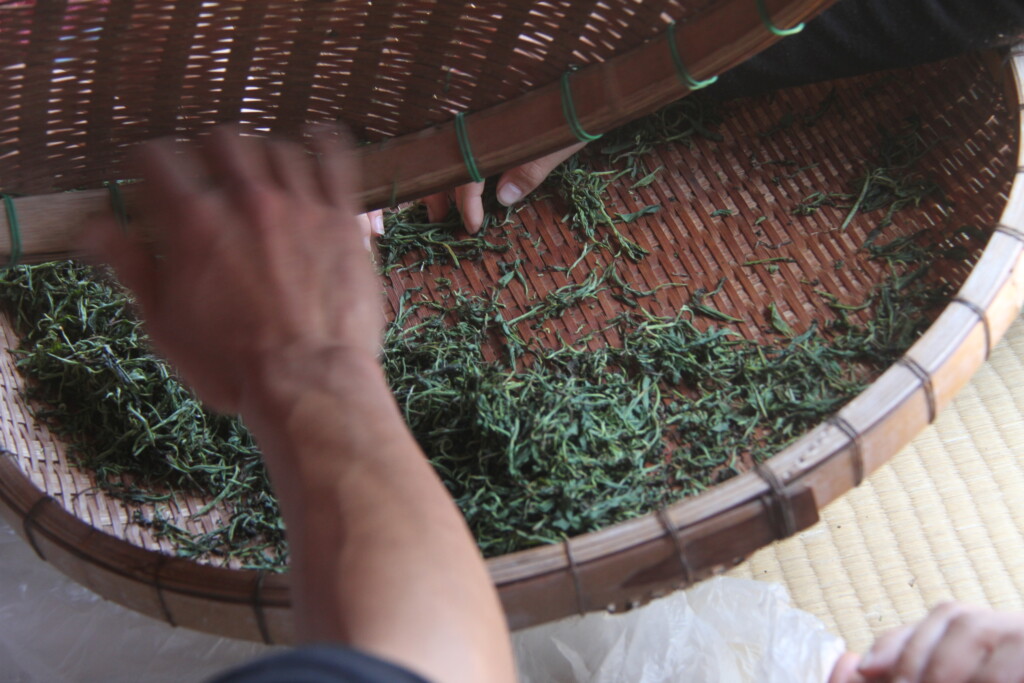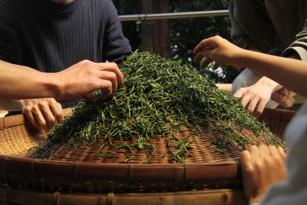 その後は、前日に収穫していた紅茶用の茶葉を手揉みしました。発酵を進めるために全体的に凹凸をつけるようなイメージで。