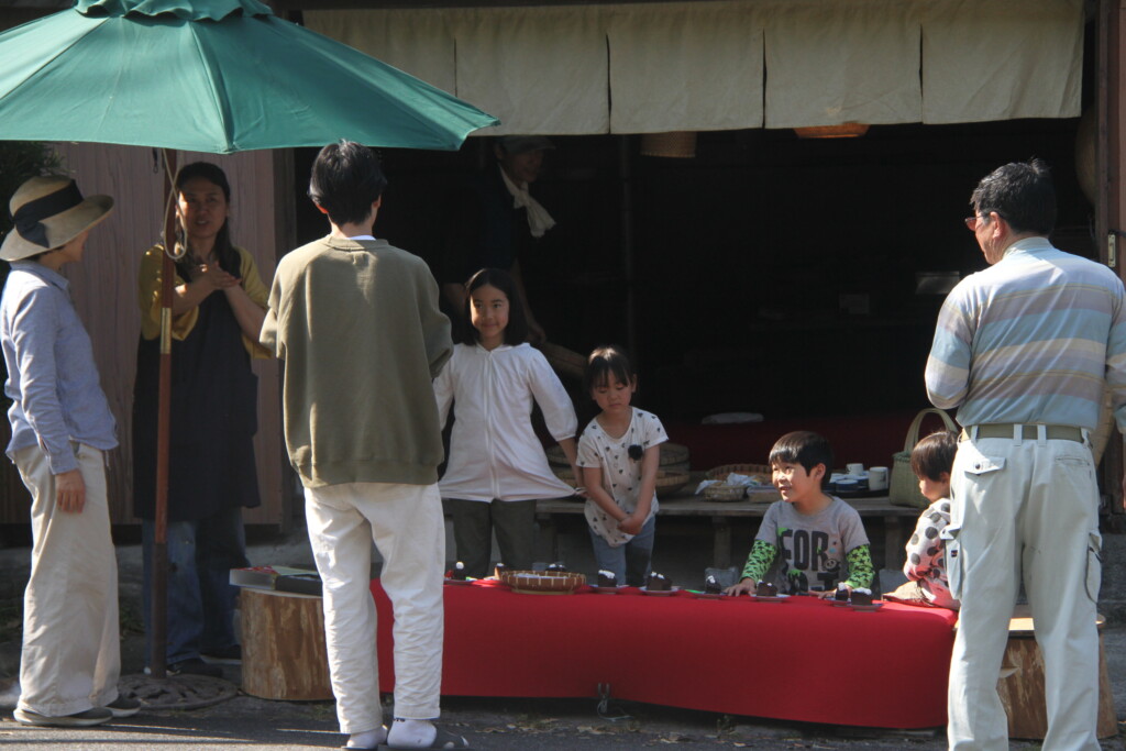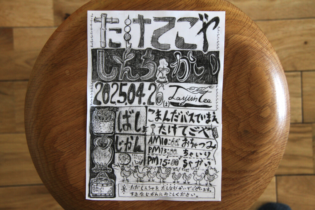 同じ駒田集落で竹細工をされている「たけてごや」の鹿倉さんからお茶会をしますよ~、とお誘いを受けました。