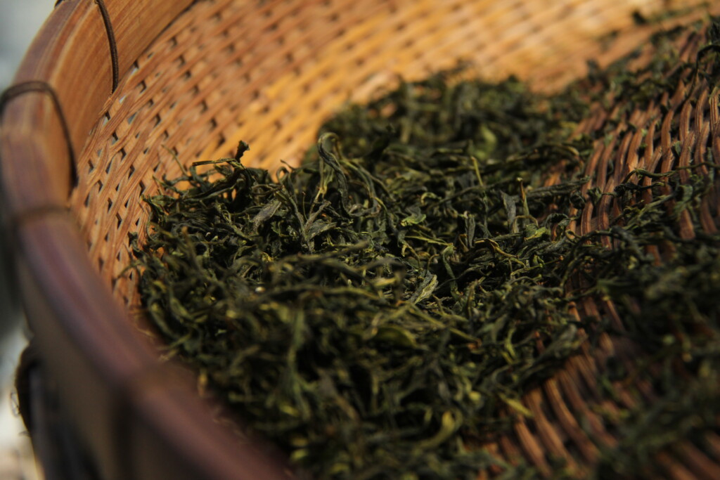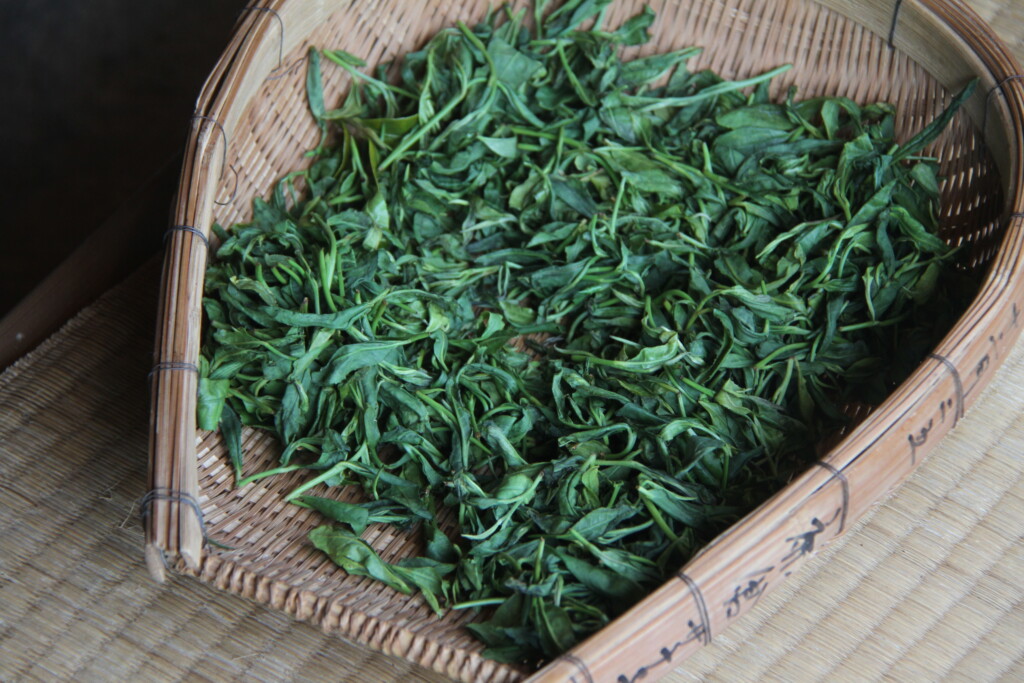 突起の頂部付近で乾燥させていくのですが、だんだんチャベロと茶葉の間が蒸れてくるので、ときおり茶葉を下の窪み落として、チャベロ頂部を乾燥させます。