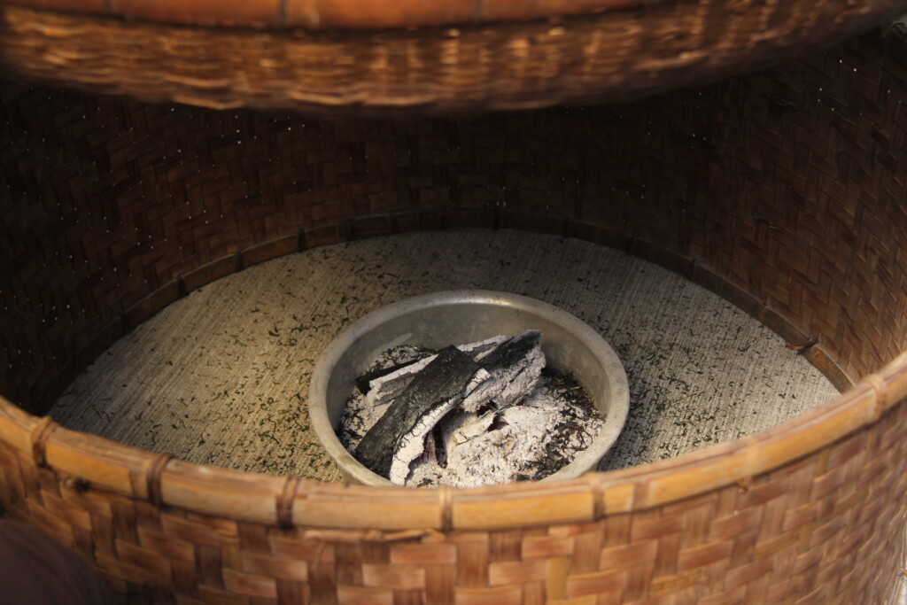 先ほど手揉みした茶葉を、下部に炭火を入れた茶倍炉(チャベロ)で乾燥させていきます。