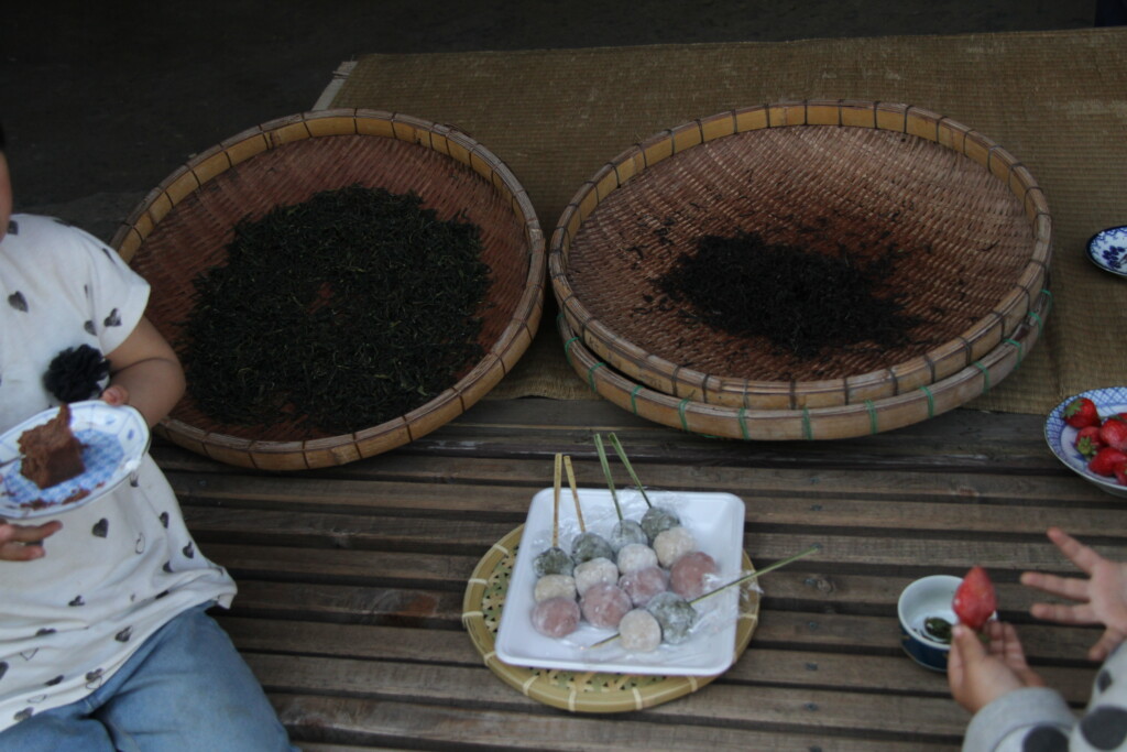 最後に持ち寄った菓子類と乾燥したての緑茶と紅茶でお茶会をしました。