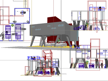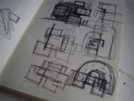 以前は平面・立面・断面ぐらい大まかに書いてから起こしてましたが、このシリーズは実際に建てるわけではないのでフィーリングとスピード重視で。