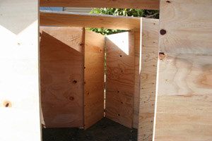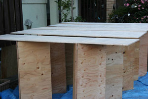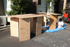 朝ASHの設営を終え、昼から展覧会の台をつくることに。