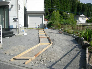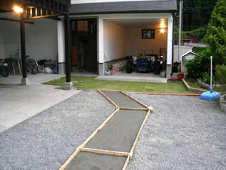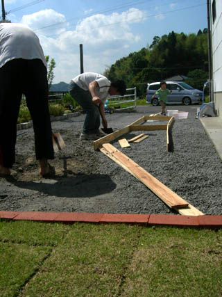 また、今回は二人目の子供が生まれるので、ベビーカーが通りやすいように砂利敷きのアプローチ部分を一部コンクリートにしたい、ということでその手伝いもしてきました。