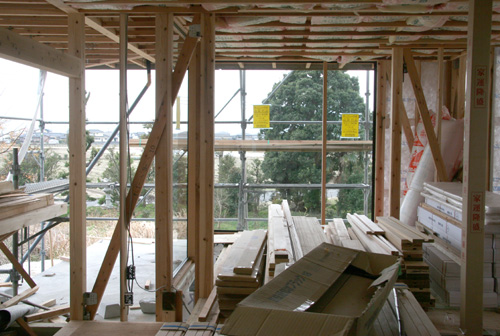 内部は板材が運び込まれて狭くなっていました。恵まれた敷地環境と内部の関係が空間としてどういう感じで立ち上がるか。楽しみです。
