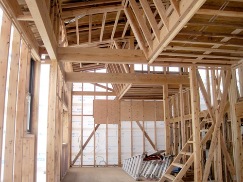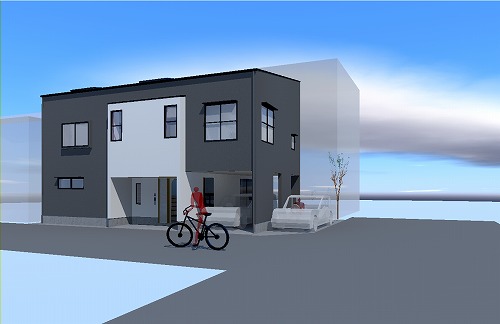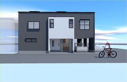 当初3階建てで想定されていた敷地に、例のごとくスキップフロアの2階建てで計画。 オーソドックスでコンパクトな形ながらも駐車スペースや収納・ロフトも確保でき、心地良い空間になりそうです。