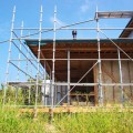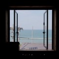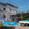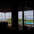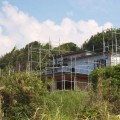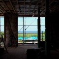 海まで徒歩一分のこの住宅。サッシも入って屋内からの景色も確認できるようになりました。 視線と風が様々な方向に抜けるように考えていたのですが想像以上に開放的に感じる空間になりそうです。