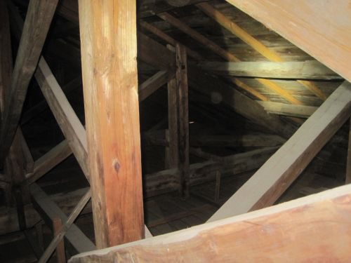 なんか、絵に描いたような模範的洋小屋組が、
