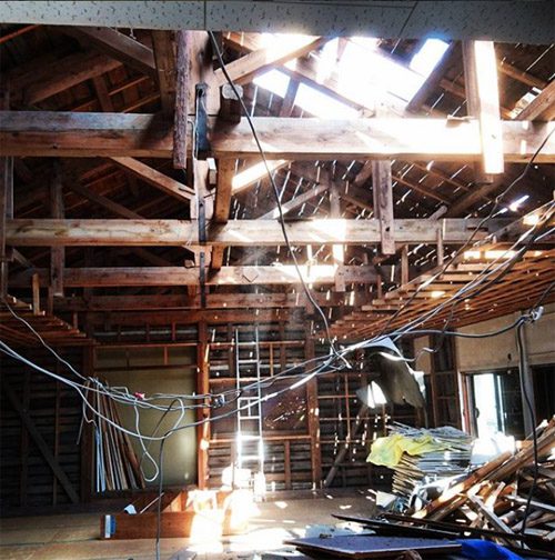 これは既存の屋根を解体途中。今しか見れないけれども、このままにしたいような光景。