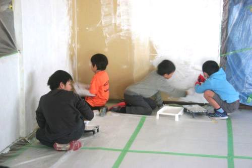 ・DIY向きの材料を購入して、壁塗り、床塗りを子どもたちと一緒にすれば工事費も抑えられるし、子どもたちも良い経験になる。