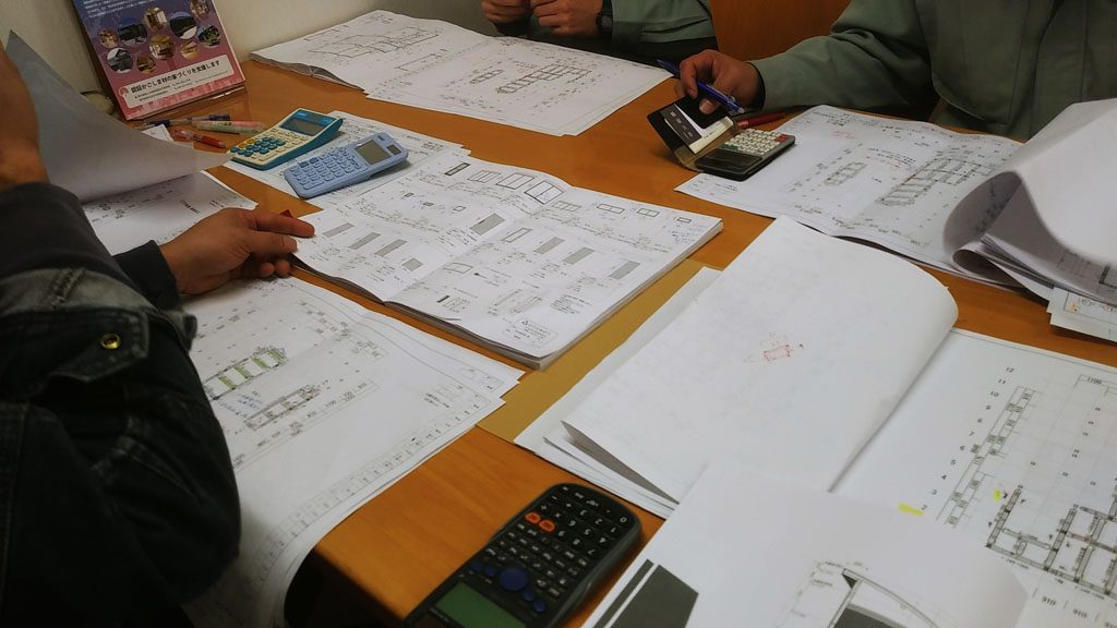 うちは、スキップフロアーなどの複雑な構造や、メリハリをつけるために木の組み方や寸法を攻めてたりすることが多いので、どうしても、知恵を持ち寄るこの打ち合わせは欠かすことができません。