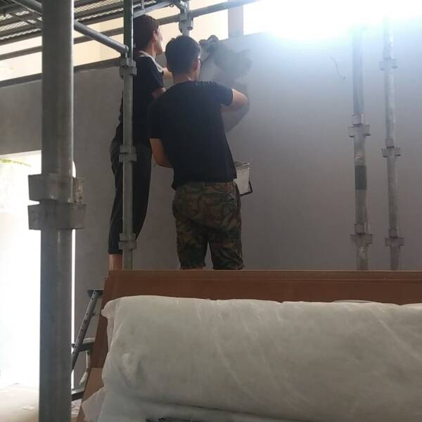 下地に塗装用クロスを採用してみたのですが、1回塗り+タッチアップで十分そう。珪藻土の材料も想定の半分で済んだ感じです。