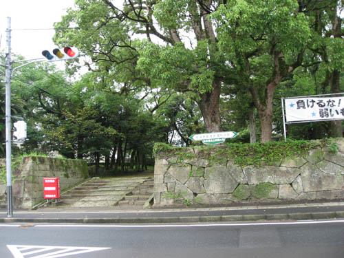『慶長12年に島津義弘によって築かれたものです。義弘は帖佐平松から移る際に、江夏友賢に命じて建てさせました。南北200メートル、東西350メートルの長方形をしていて、南側は石垣、北側は塀で囲みました。(レジュメより)』