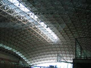 杉の角材5,602本を使用した木造立体トラス構法のドーム。