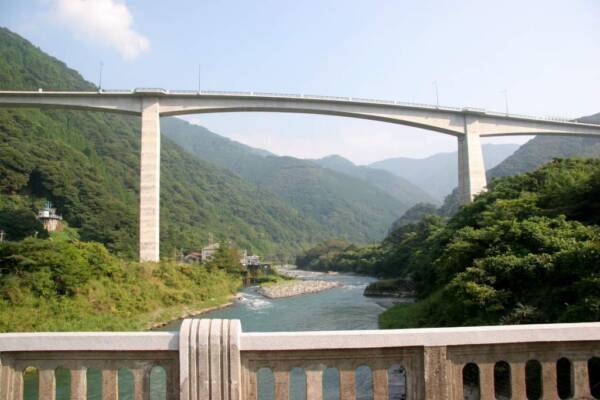 - 頭地地区の水没予定地の橋より。代替地はずっと上にあり川まで心的な距離がかなりある。